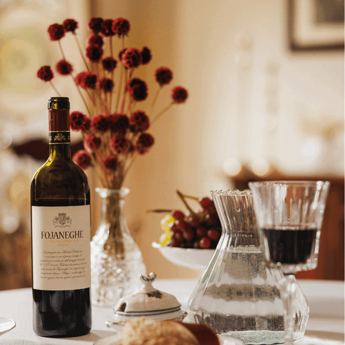 Fojaneghe è il risultato di una brillante esperimento del Conte Federico che intuì la peculiarità dell'incontro tra le unicità climatiche dei territori trentini e i vitigni classici dei grandi vini di Bordeaux, Merlot e Cabernet, finemente valorizzati dall'uso sapiente della barrique. La sua prima vendemmia risale al 1961, e da allora questo rosso elegante e dal finale vellutato, è iconica espressione