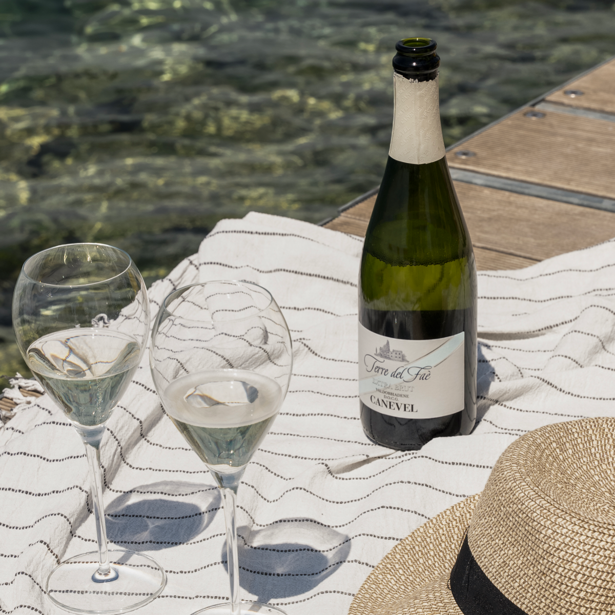 Die Hügel des edlen Faè-Weinbergs, eingebettet in eine reiche Natur, bringen auch den gleichnamigen Extra Brut Sekt hervor: trocken, knackig und mit feinen Aromen von Weinblüten, Mandeln und Renetta-Äpfeln.