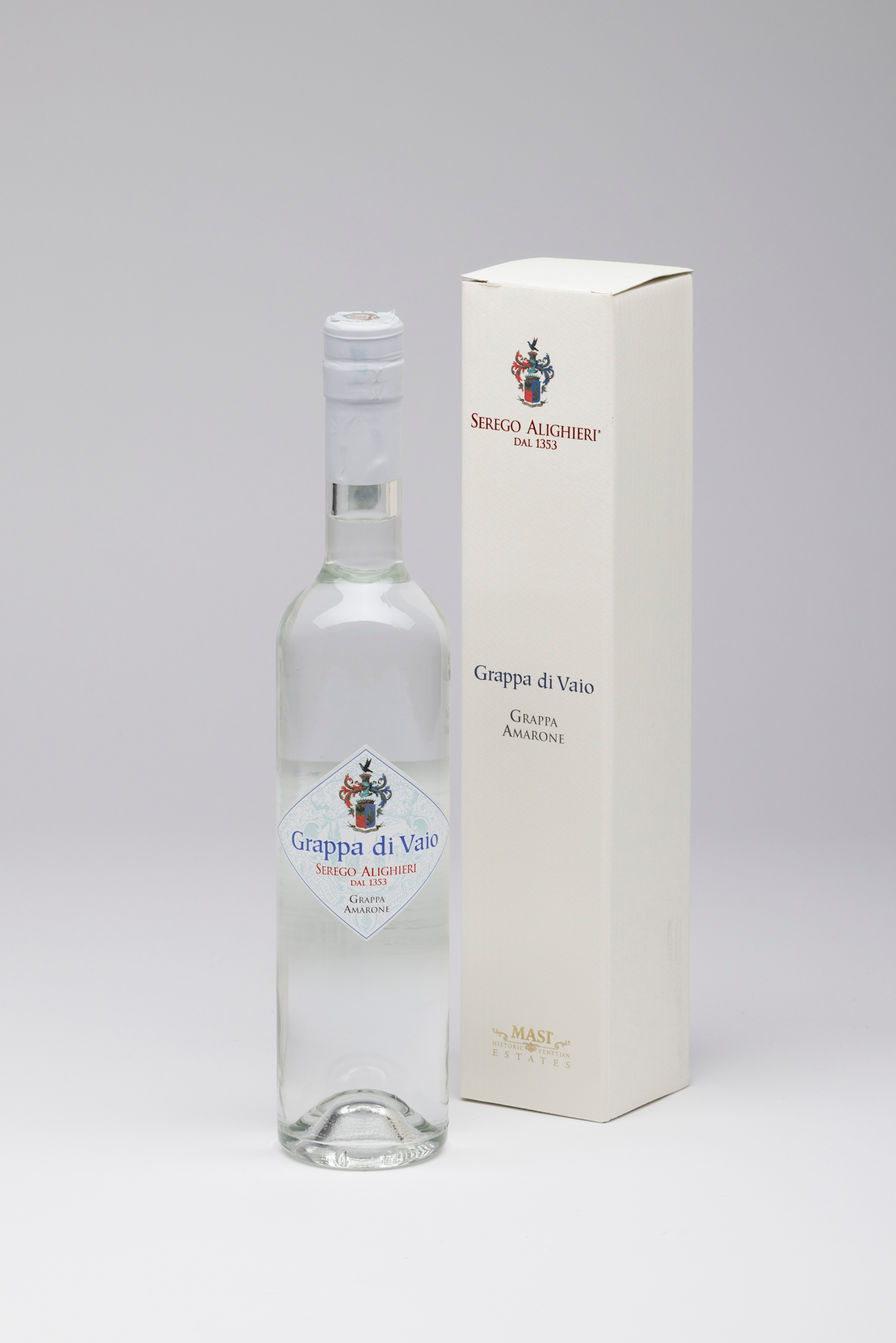 Grappa bianca raffinata e morbida, di piacevole personalità e gradevole alcolicità. È prodotta nelle Possessioni dei Conti Serego Alighieri in Valpolicella Classica con le vinacce delle uve appassite utilizzate per la produzione dell’Amarone Vaio Armaron, distillate a vapore diretto con antico sistema discontinuo.