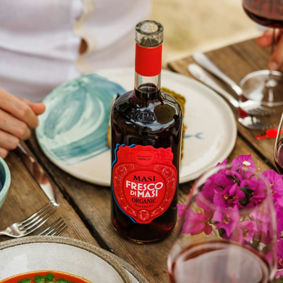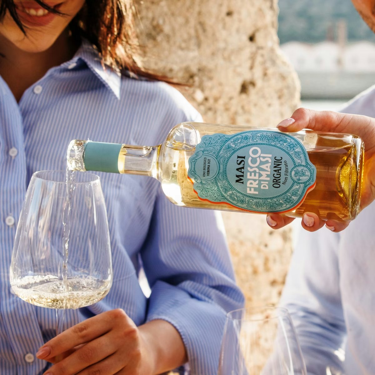 Fresco di Masi is 100% sustainable: the bottle is light and transparent, the label is recycled, and the cork is natural and completely plastic-free.