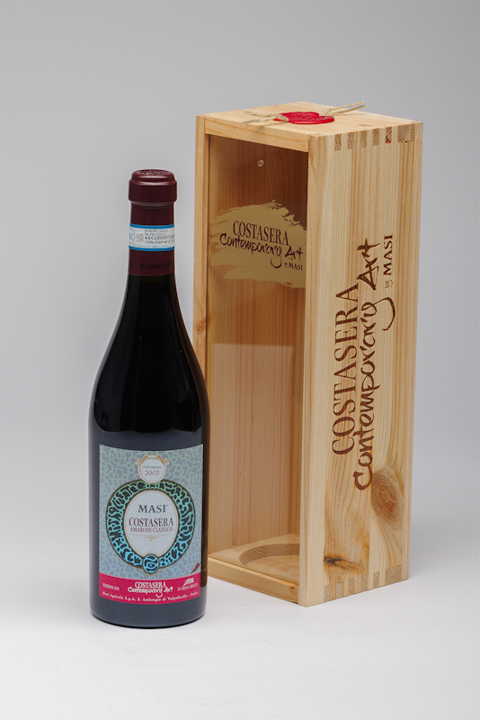 Le projet « Costasera Contemporary Art », organisé tous les deux ans, voit la sélection d’un artiste de renommée internationale, originaire d’un pays ayant des liens étroits avec Masi et ses vins, pour créer une œuvre dédiée au vin emblématique de Masi, l’Amarone Costasera.